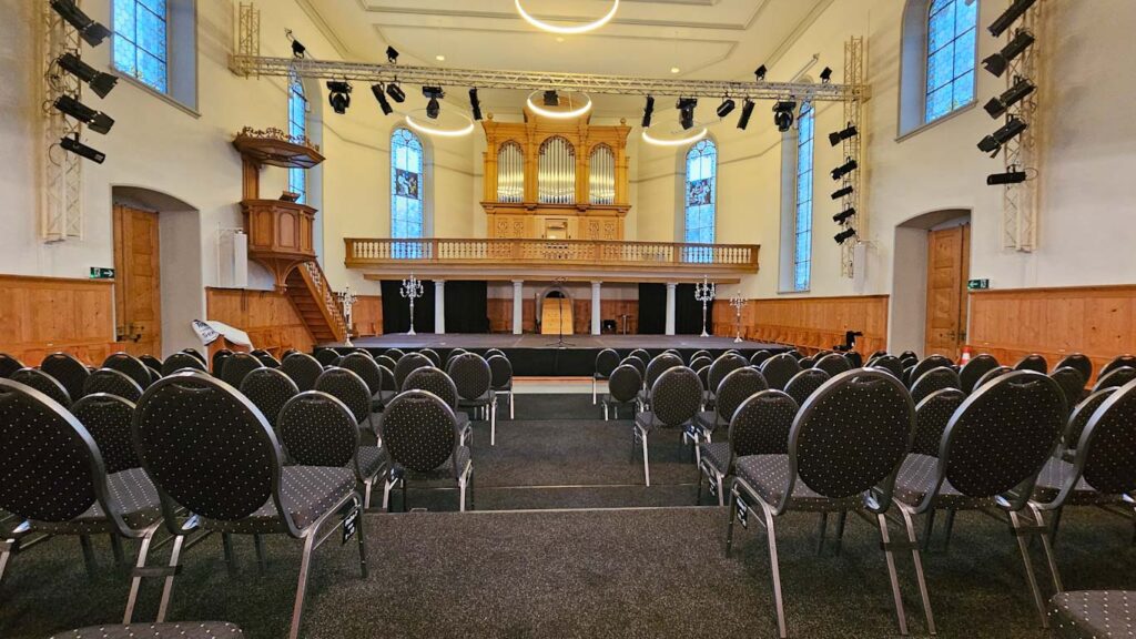 Die Eventkirche bietet Platz für 300 Personen sitzend oder 400 Personen stehend.